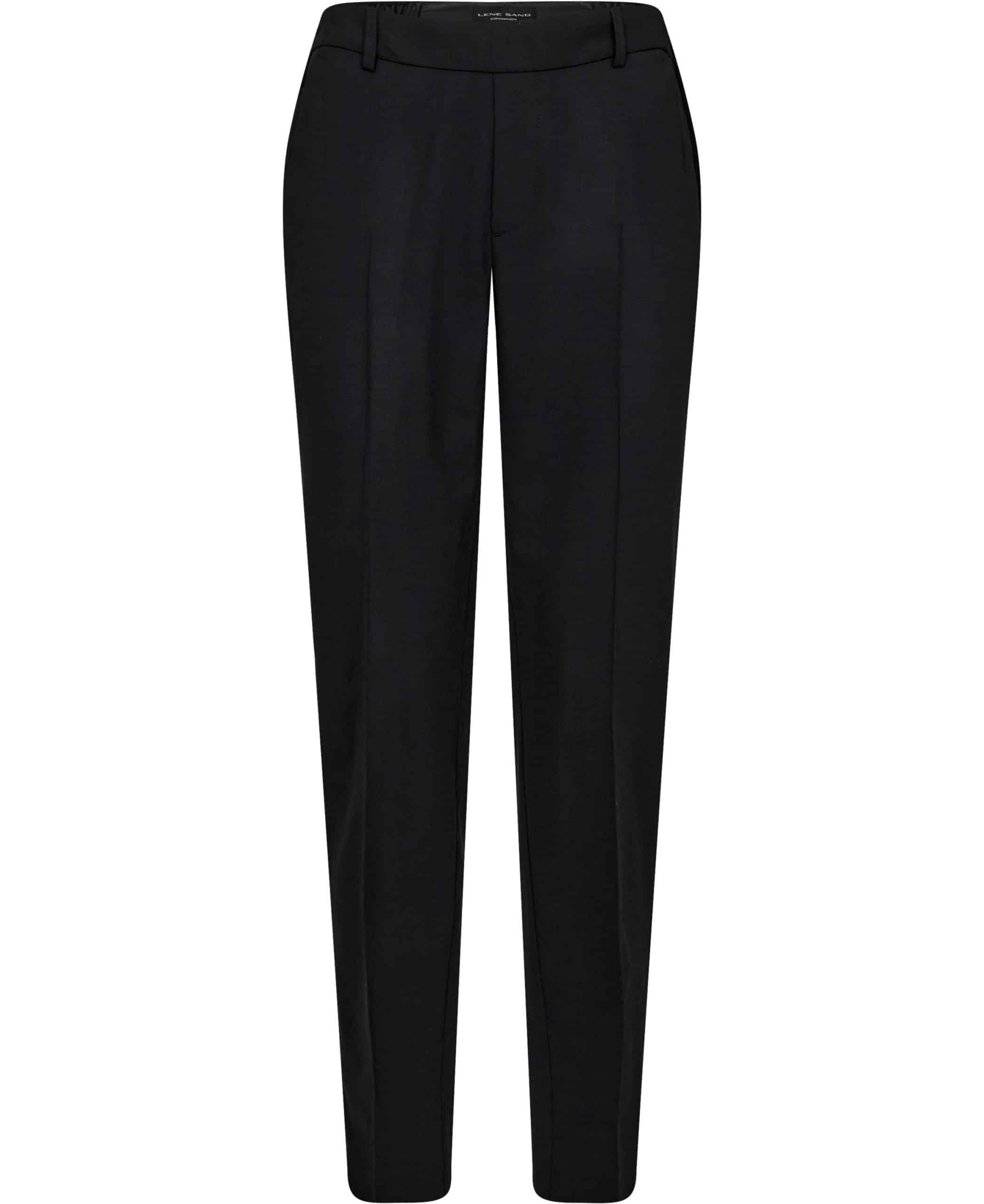 Skræddersyede bukser med lynlåsåbning foran. Skrå sidelommer og elastik i taljen bagpå for komfort. Lommer med kantning bagpå. Ankellængde og lige silhuet