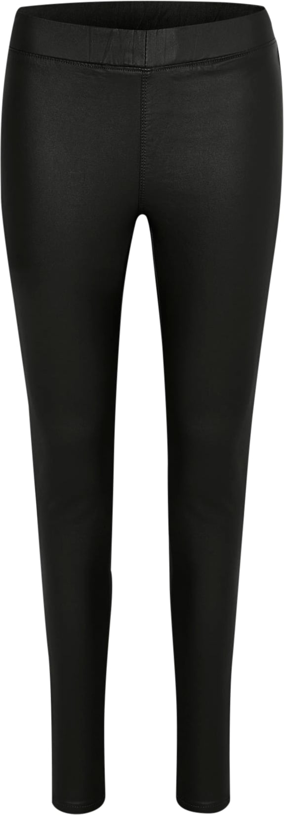Cool jeggings-bukser med skinnende udseende. De er dejlig behagelig at have på. Disse biker-lignende bukser er lange og med slim fit pasform. Der er mange stylemuligheder med de her lækre bukser, da det både ermuligt at style det i et råt look, men også m