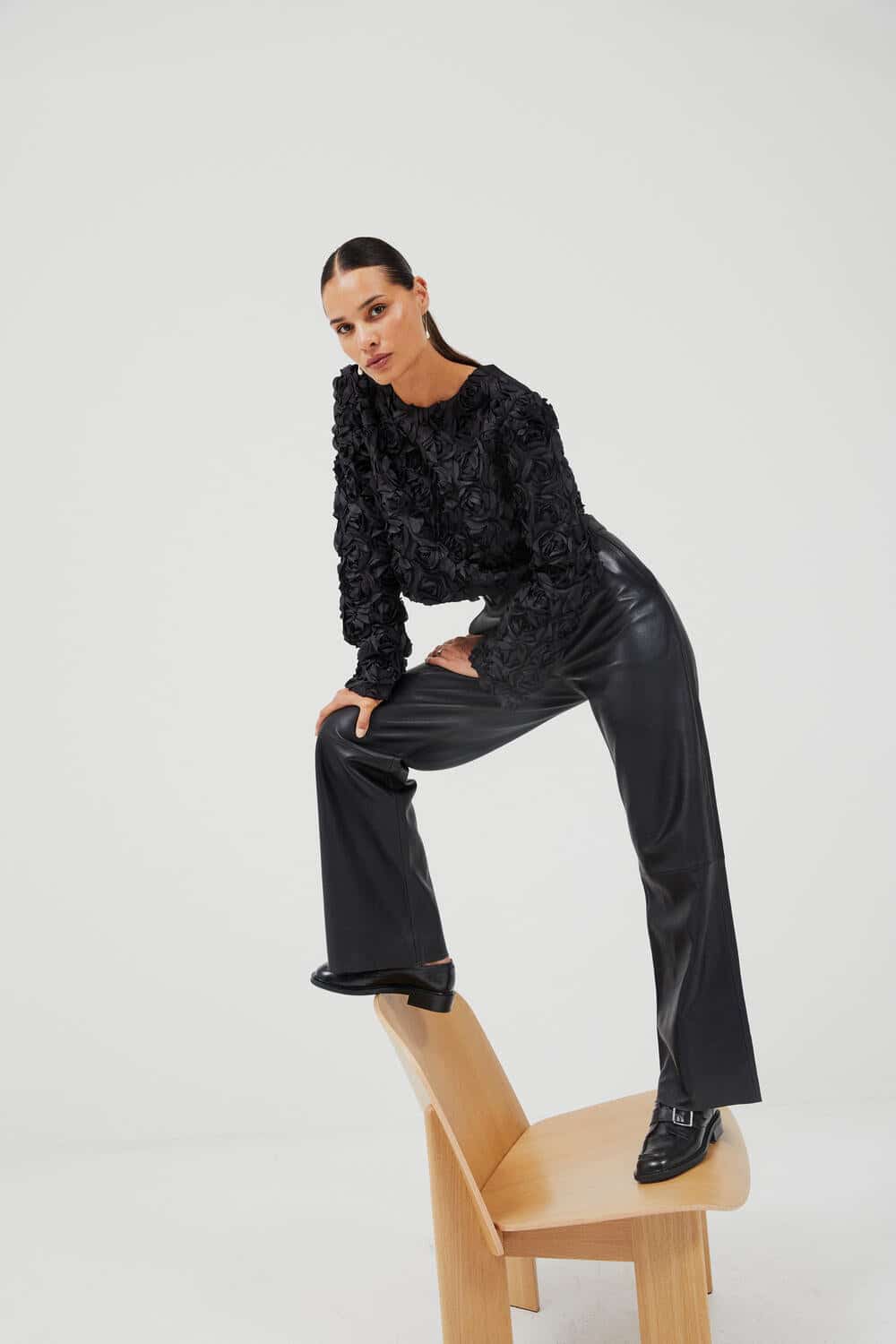 De stilrene Aluna bukser fra Second Female er fremstillet i 100% lammeskind, som giver en luksuriøs, blød og smidig kvalitet. Pasformen er lige og det minimalistiske design med skjult lukning og rene linjer fremhæver læderets naturlige struktur og giver e