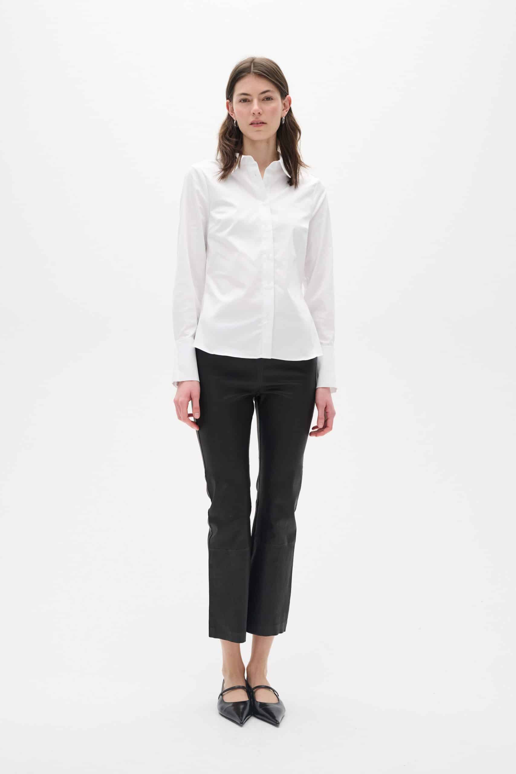 Tidløse stilfulde InWear bukser designet i et blødt læder med et tightfit, en anelse beskåret benlængde, flared ben og en behagelig elastisk talje.