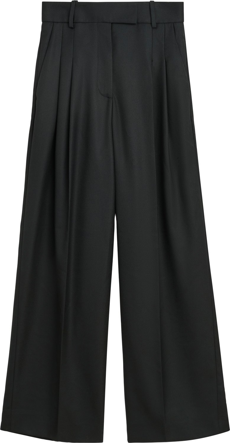 Cymbaria bukserne er et udtryk for By Malene Birgers design dna, som består af hverdagsklassikere, der er både elegante og lette at bruge. Den højtaljede style definerer elegant taljen, og plisseringerne giver de brede ben definition. Stop en silkeskjorte