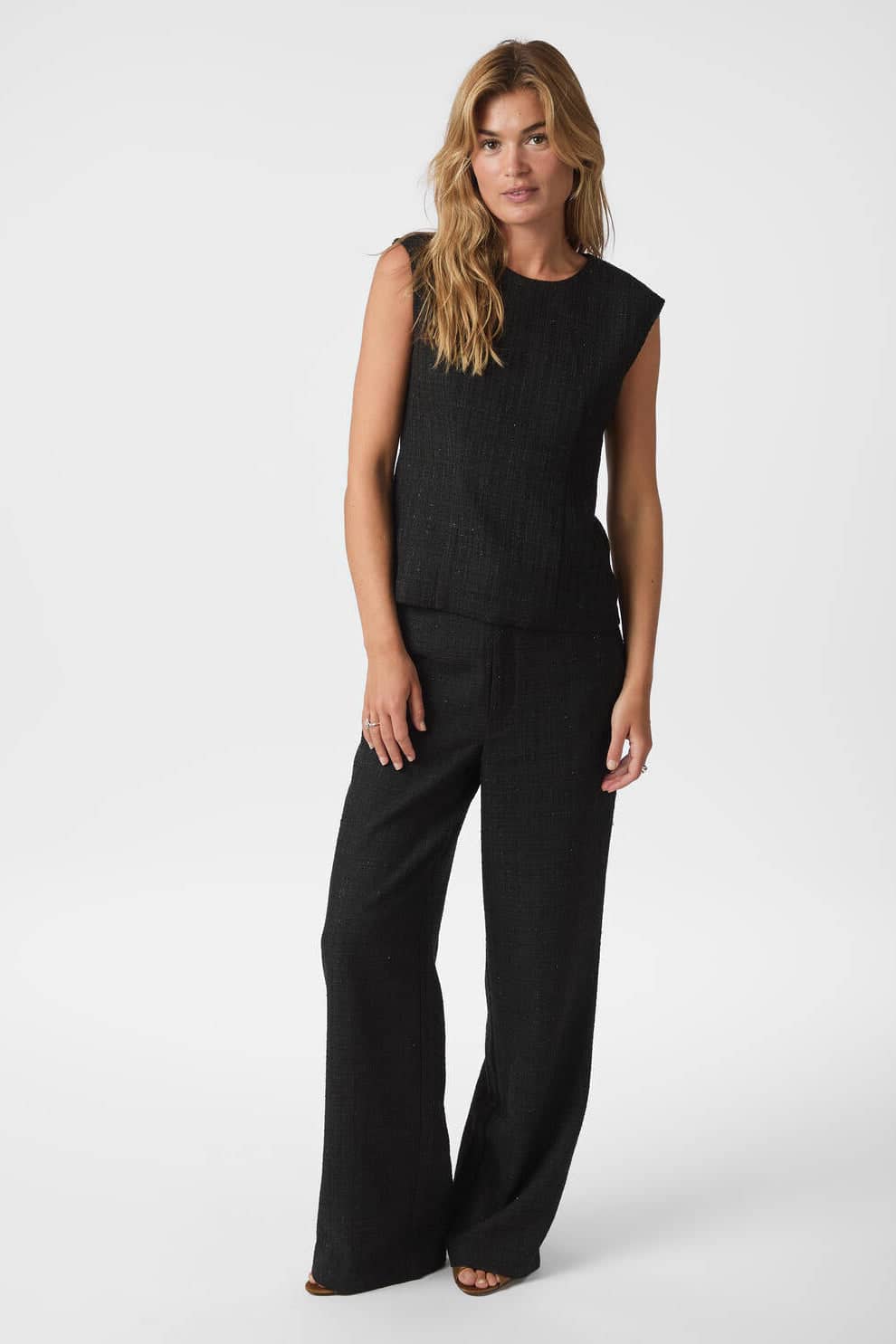 Emmett Bouclé bukserne fra Neo Noir er et par sorte habitbukser designet med en karakteristisk struktureret overflade. Bukserne er klassiske med skjult lynlåslukning og bælteløkker.