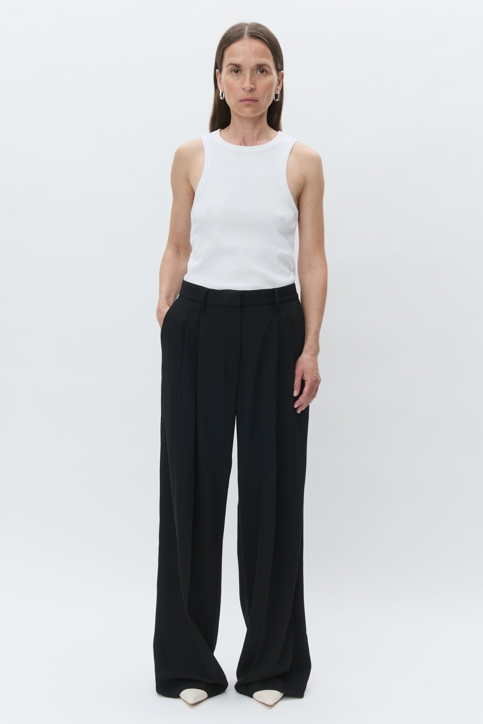 Enzo Garbadine bukserne fra DAY Birger et Mikkelsen er designet med lige ben og læg. Bukserne har bælteløkker og lynlåslukning.