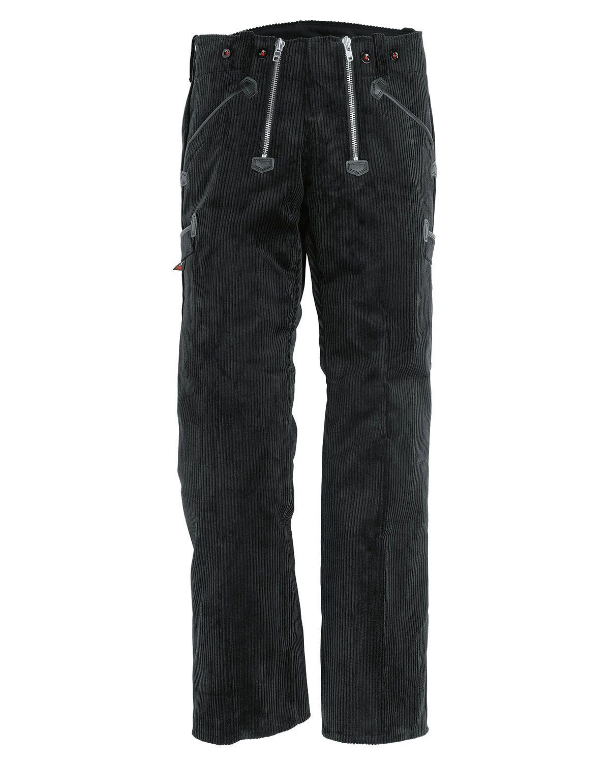 FHB Karl/Heinz Naver Bukser i sort fløjl er fremstillet af slidstærkt Trenkercord, et klassisk valg for dem, der værdsætter traditionelt arbejdstøj. Med en fodvidde på 48 cm, kunstlæderforstærkede lommekanter og to tommestoklommer kombinerer disse bukser