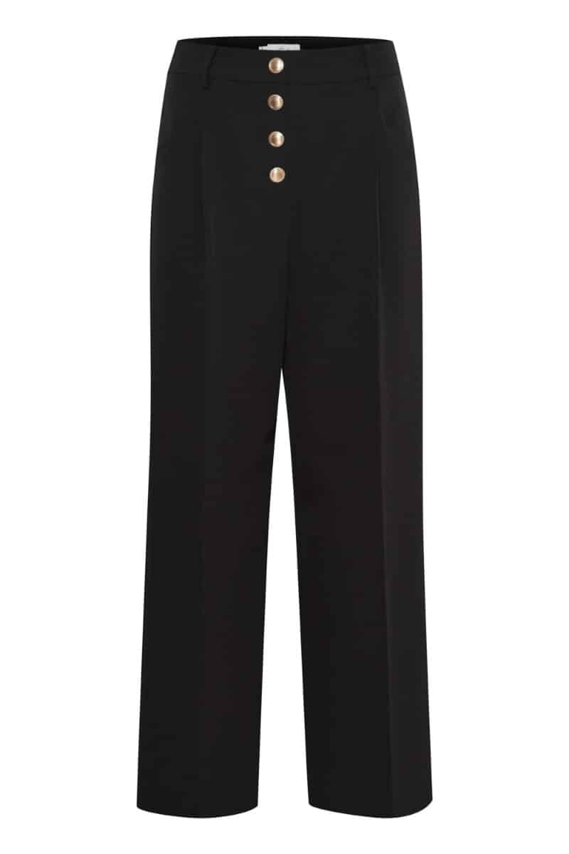 Et par super flotte sorte bukser fra Ichi i et jakkesætslook. Bukserne har de flotteste knapper foran, som giver et super flot look og pepper et hvert outfit op! Pasformen er regulær og i et klassisk snit.Â