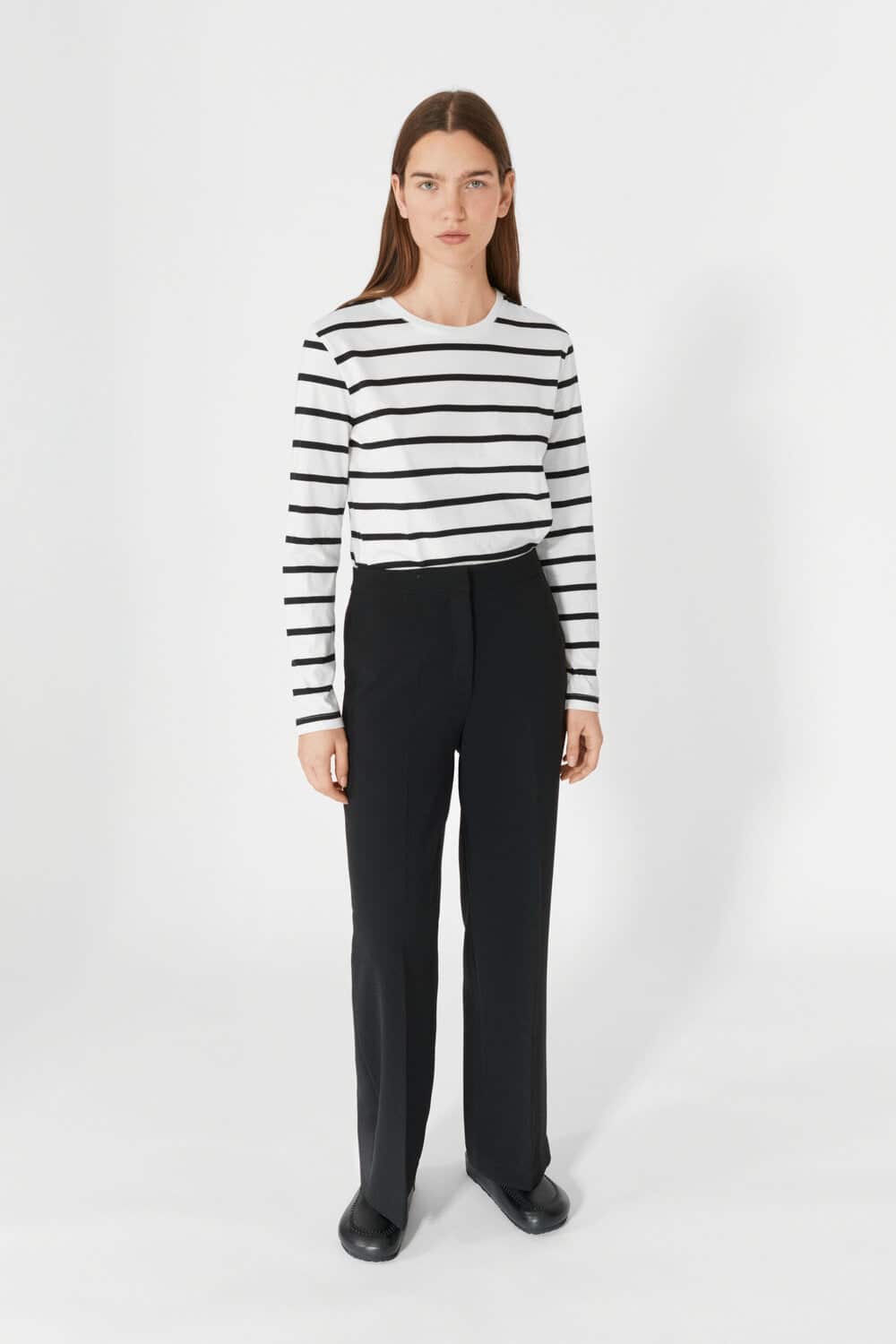 Lea habitbukserne er designet i en regulær silhuet med lige ben, skjult lukning og klassisk læg foran.