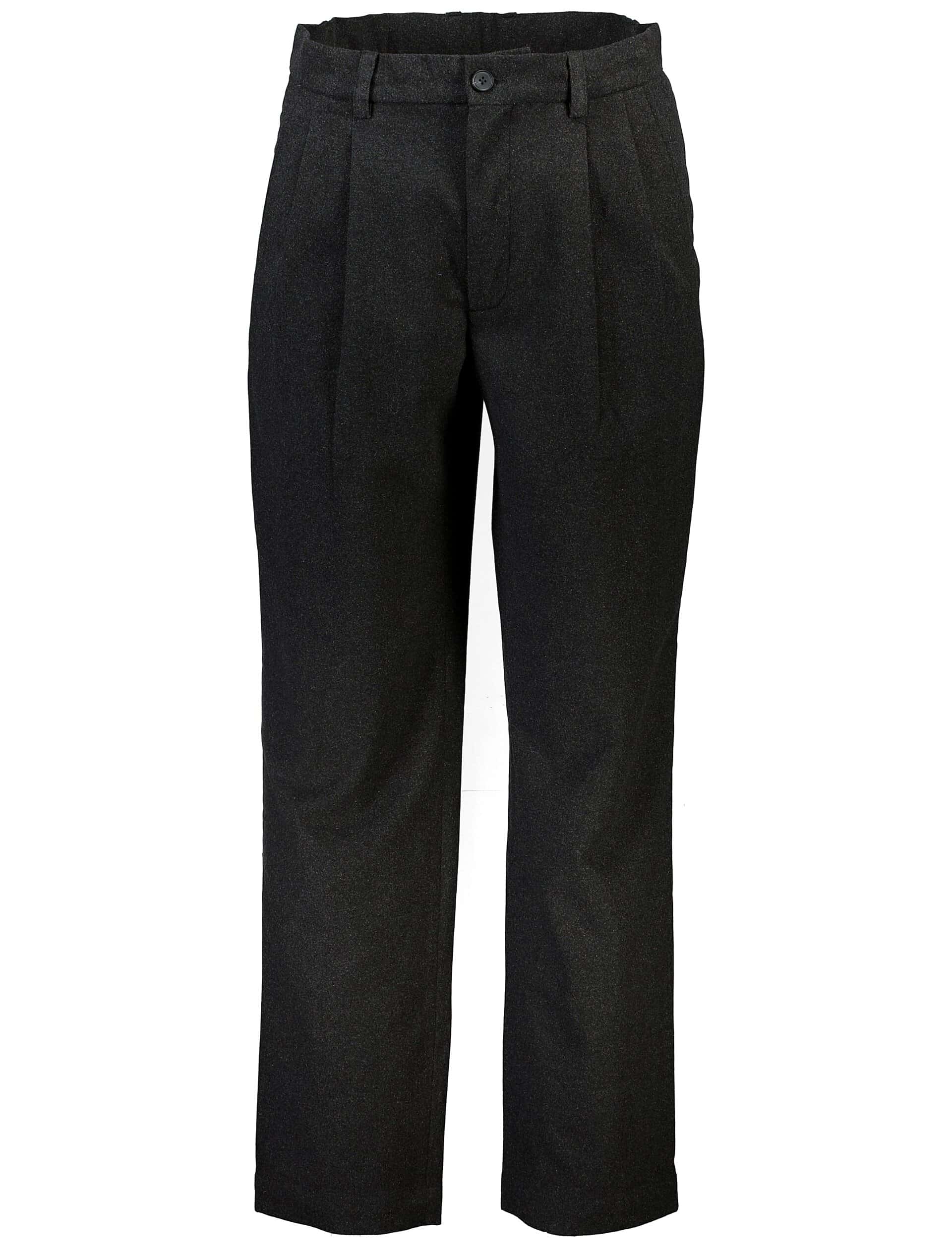 Lækre uldbukser fra Lindbergh lavet med stretch for et komfortabelt fit. Lukkes med knap og lynlås. Der er to lommer i siden samt to paspolerede baglommer med knapper. Bukserne er lavet i wide fit, så de er lige fra lår til ankler.