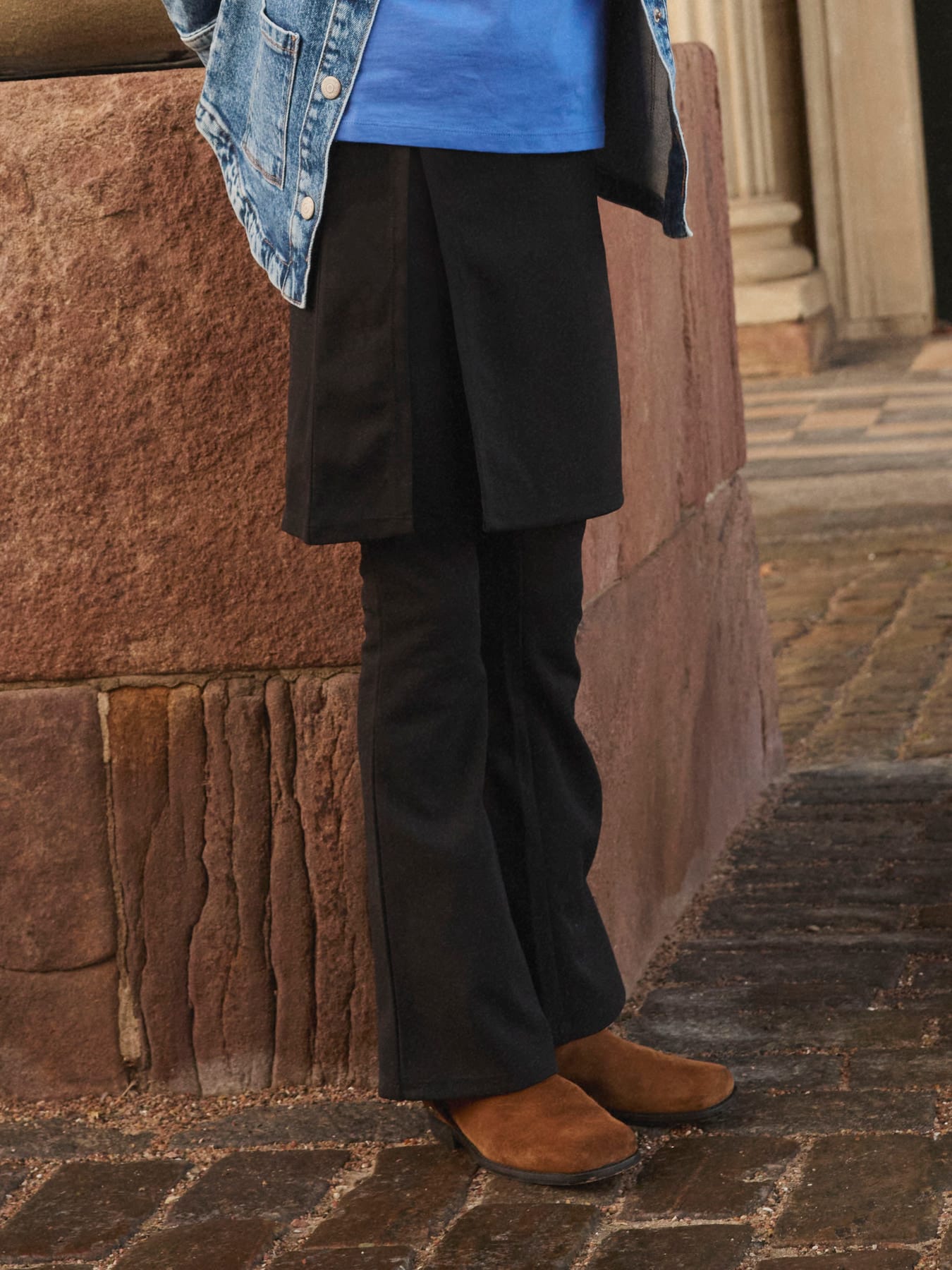 En kæmpe trend lige nu er disse seje bukser med nederdel udenpå fra Name it. Bukserne og nederdelen er sorte og dejligt bløde. Nederdelen har en slids i den ene side. Bukserne har boot-cut med lidt vidde forneden og der er mulighed for at justere størrels