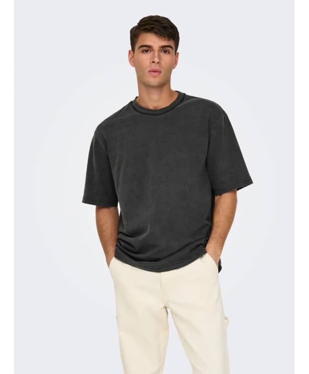ONLY & SONS DISTRESS t-shirt i sort til herre
