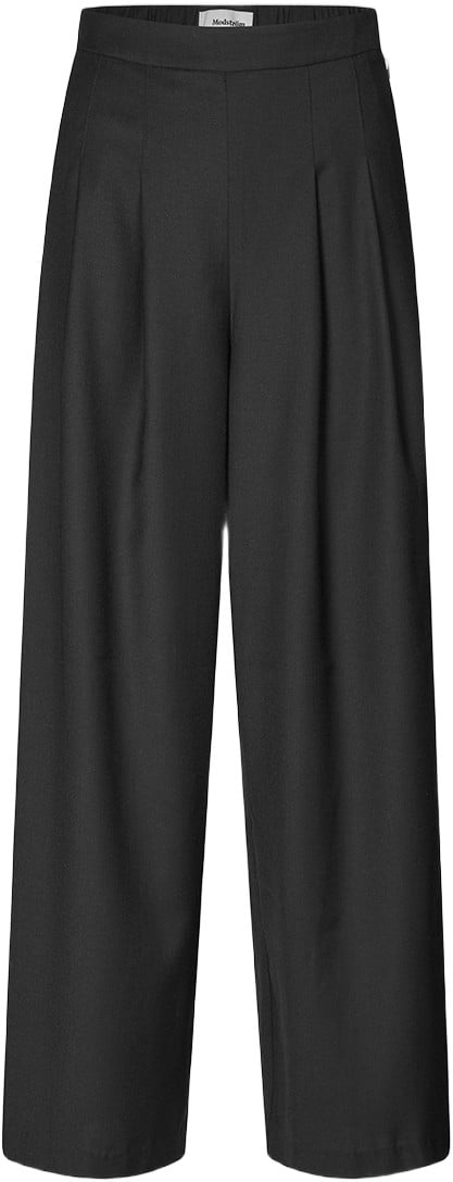 Sorte bukser med brede ben, læg og elastisk talje. Piloumd pants har sidelommer og en lynlås med knappelukning i siden