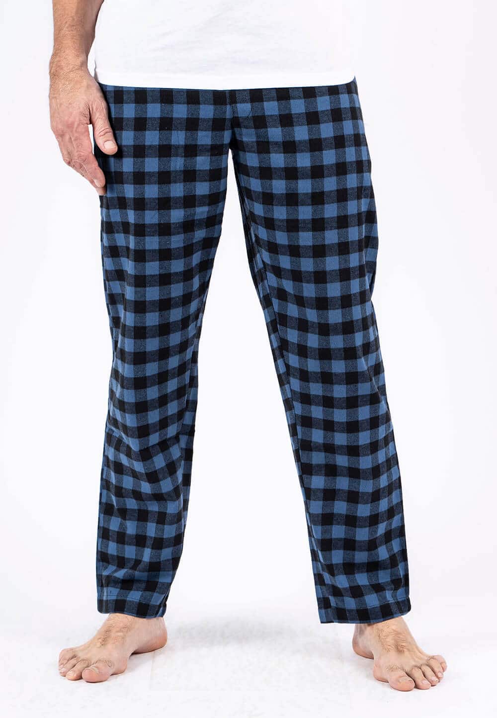 ID: Johan 16-100105, 7011 Super bløde pyjamas bukser i tern, med lommer og elastik i talje. Modellen måler 185cm. og bruger str. L